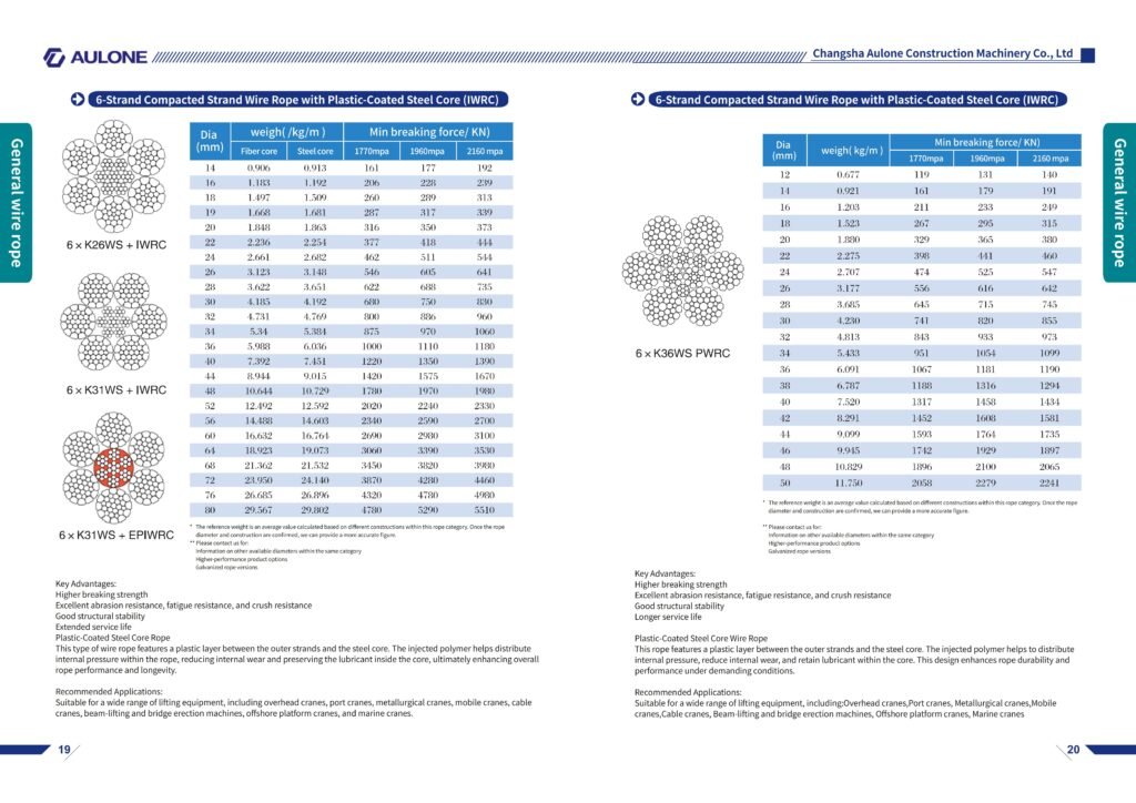 | Steel core | High tensile strength | 6XK36WS-IWRC, 8XK26WS-IWRC |