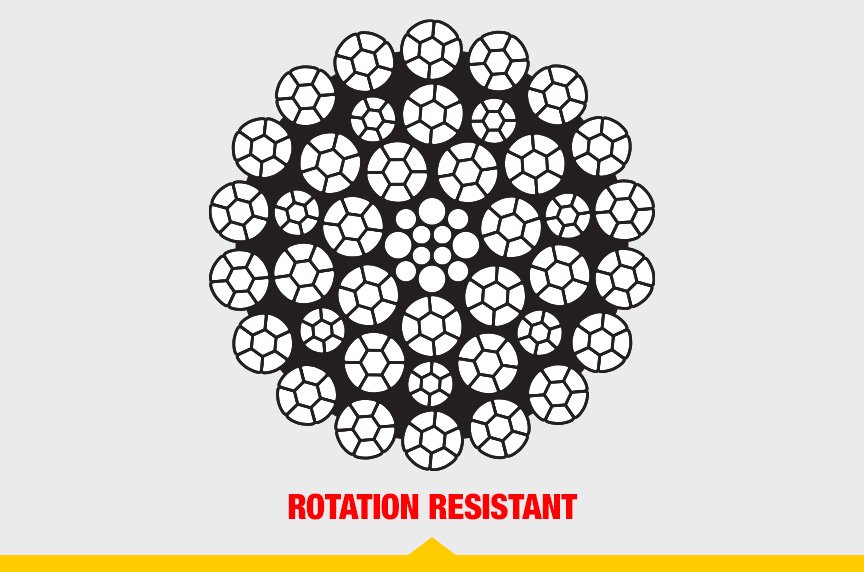 Rotation-resistant ropes are specially designed so that the rope does not spin or rotate under load. This is achieved by using specific strand constructions and lay directions. These ropes are particularly suitable for hoist ropes in tower cranes, elevators, and lifting equipment, where load rotation could be dangerous.